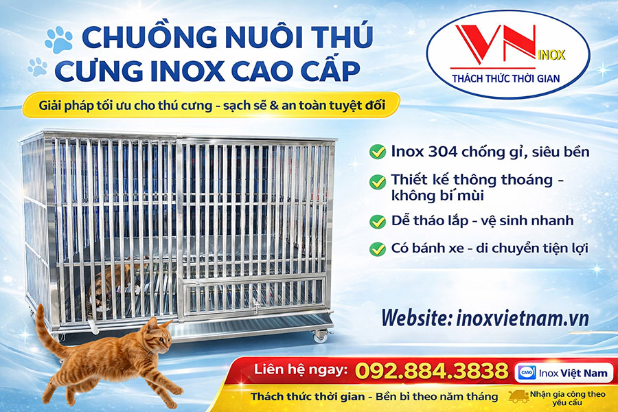 Chuồng chó mèo bằng inox không gỉ là một trong những lựa chọn an toàn, bền. Và hiệu quả nhất cho vật nuôi trong nhà. Chúng an toàn để sử dụng trong nhà hoặc ngoài trời. Đồng thời cung cấp nhiều kích cỡ và cấu hình khác nhau để đáp ứng nhu cầu của người bạn yêu thương của bạn. Nếu bạn đang cần một chiếc lồng chó mèo mới. Hãy xem lựa chọn lồng chó mèo bằng inox 304 không gỉ của chúng tôi. Từ các nhà sản xuất hàng đầu như Inox Việt Nam.